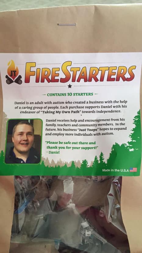 Together with the help of people who support him in living and working, he makes JT Firestarters, which are sold all over eastern Iowa