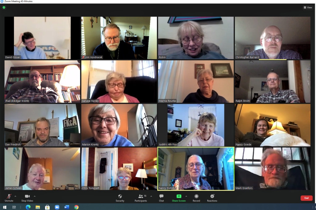 During these times when we cannot meet in-person, Augustana has two scheduled online opportunities to gather every week. Both on Saturday – at 2 pm folks gather for prayers for healing and at 4 pm we enjoy an unstructured chat (like an online version of coffee hour).
