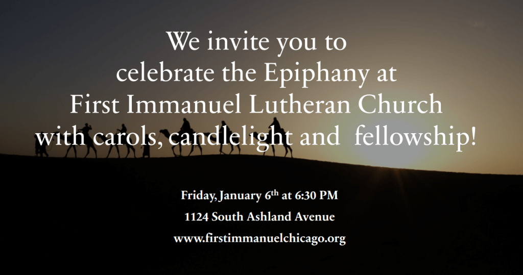 Augustana has been invited to join with First Immanuel Lutheran Church to celebrate the Epiphany on Friday night, January 6th – the light of Christ revealed to the wider world, symbolized by the visit to the manger by the Three Wise Men.