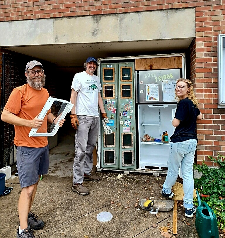 We had a great crew, and we accomplished a lot, including work in the garden; cleaning around the coils of both the Love Fridge and the refrigerator in the kitchen to increase energy efficiency; and attending to our (now full) compost bins to make them more easily accessible. Please be on the lookout for a new compost bin in the kitchen, where you can add food scraps and used paper towels and napkins to keep them out of a landfill.