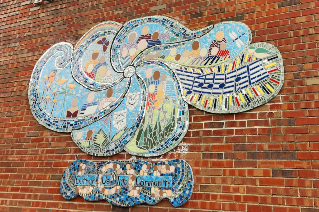Augustana member and artist Robin Mitchell, supported by a grant from the South East Chicago Commission, designed and created a mural for Augustana’s east-facing exterior wall. The mural has two components and Robin recently installed the final pieces. In her own words: