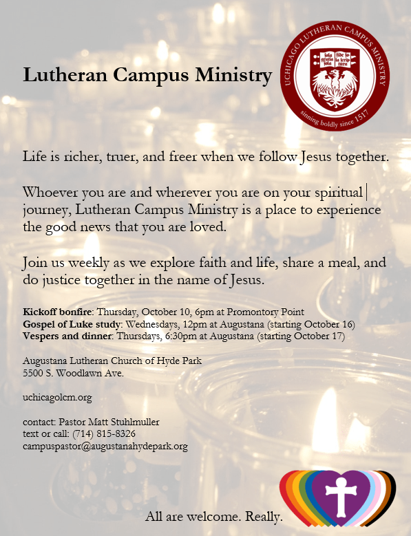 Lutheran Campus Ministry Posted on September 26, 2024 by jimvondracek Share this: Click to share on X (Opens in new window) X Click to share on Facebook (Opens in new window) Facebook Like Loading...