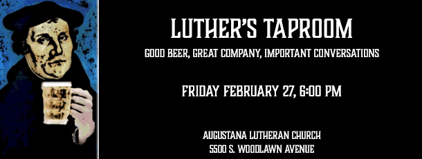 Hosted at Augustana in Hyde Park (55th and Woodlawn), open to anyone interested in good beer, great company and important conversations
