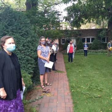 After worship last Sunday, members of the choir and others walked over to Carolyn’s home and in the midst of her beautiful gardens wished her a socially-distanced, mask-wearing Godspeed as she prepares to move, to be closer to family.